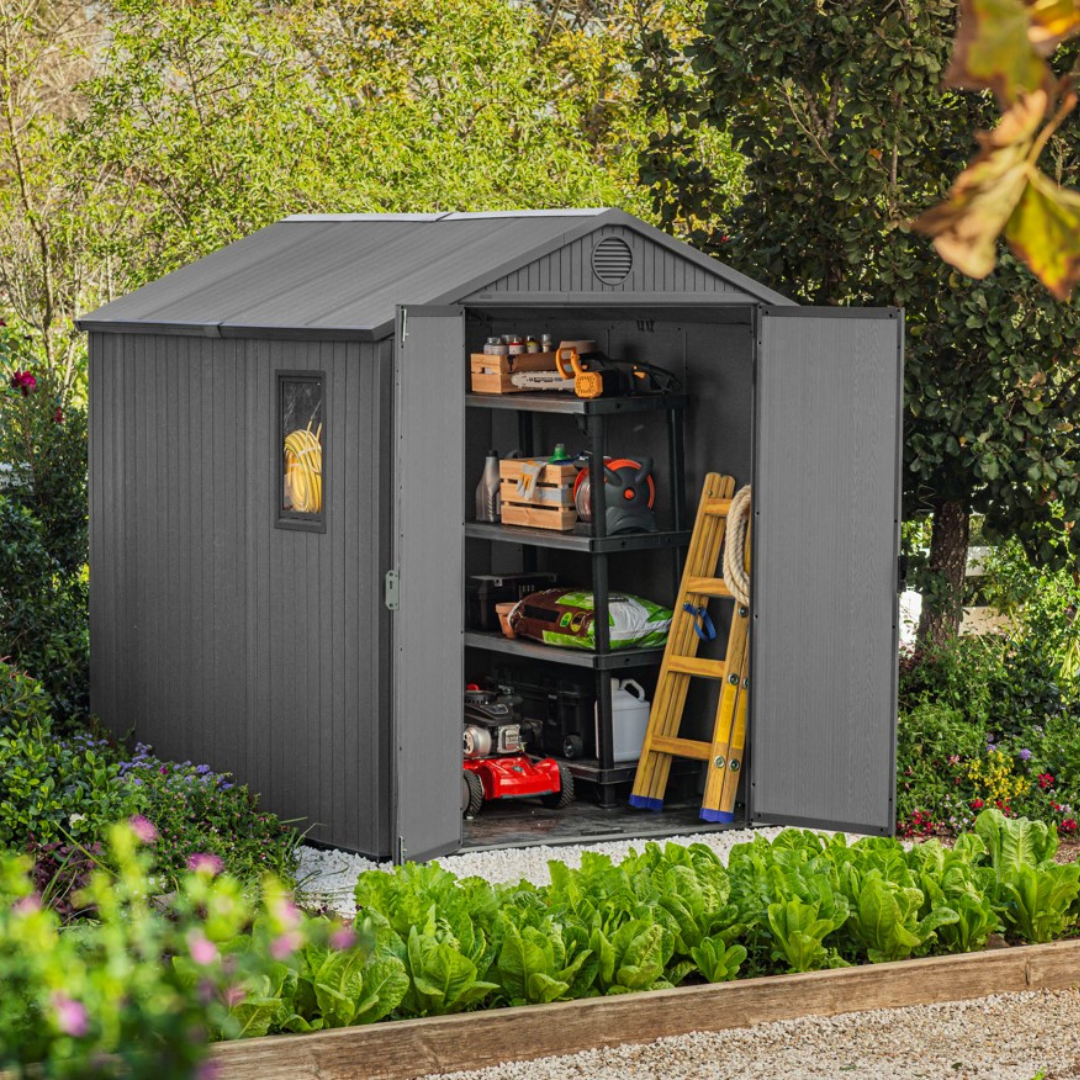 Keter Darwin 6×8 ft. Outdoor Storage Shed with Window and Skylight, Graphite