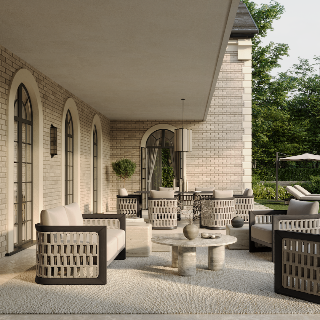 The N2 Two Seater Sofa harmoniously combines traditional elegance with modern approach. Featuring a meticulously crafted teak frame complemented by intricately woven panels, this chair seamlessly blends different materials to create a unique aesthetic. The woven design wraps around the chair in perfect symmetry, adding both texture and transparency to its form. Equipped with reticulated foam cushions, this chair provides comfort, support, and durability suitable for all weather conditions.