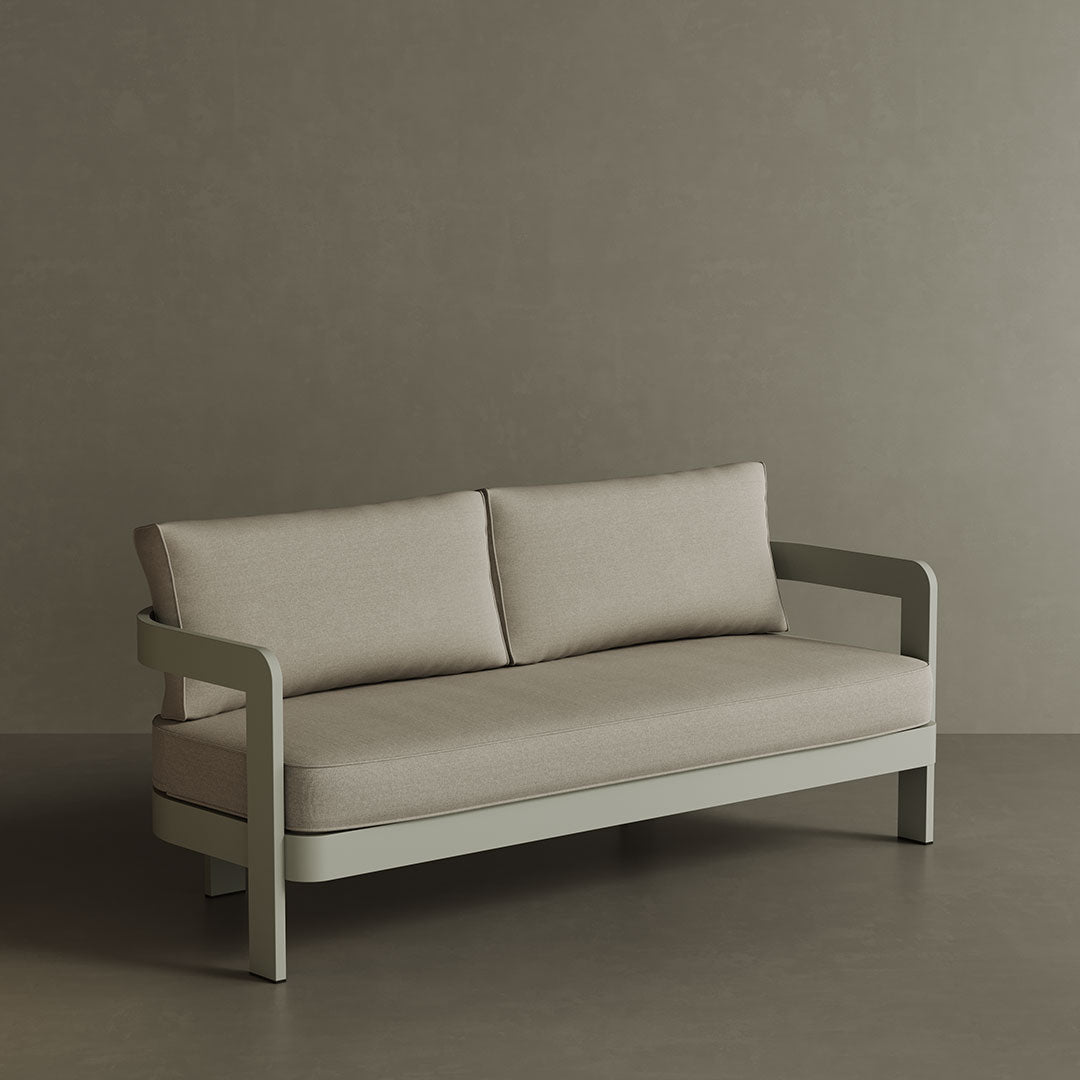 The N3 collection pays homage to the modern concept of proportion and architectural intricacy. The N3 Sofa is meticulously constructed from robust aluminium with a Taupe powder coated finish. Its clean lines are juxtaposed with its gracefully curved backrest, accompanied by two supporting side legs and and two subtle legs at the rear.